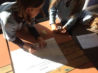 After that we used a magnifying lense to look at three natural fibres. We drew what the fibre looked like under the magnifying glass, described any patterns we could see and guessed whether the fibre came from a plant or an animal.